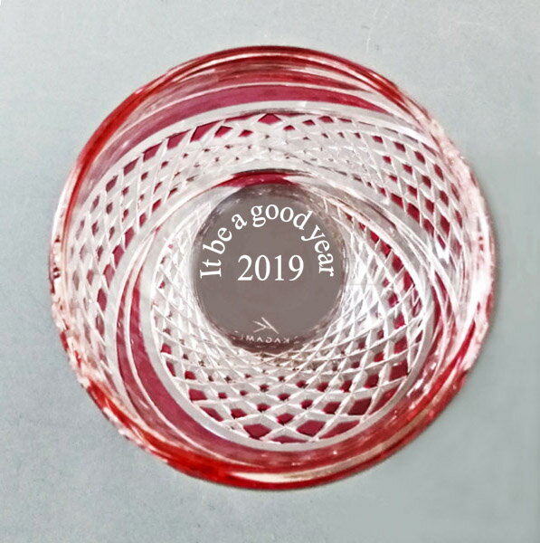 カガミ 江戸切子 ギフト ぐい飲み 冷酒グラス 【新年祝 贈物】 魚子流し紋 赤 ロイヤルブランド 木箱入り 名入れ 送料無料